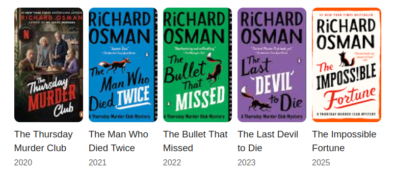 Thursday Murder Club 這個系列非常好讀,近代英文,人物設計非常鮮活,場景與篇幅的設計也都恰到好處,主人公們的已是退休年紀,過去職場商場戰場的豐功偉業也都已是過眼雲煙,對初入中年的我來說,他們多采刺激的生活故事,提供了緩解中年危機的焦慮,很適合夜深睡覺前的放鬆時刻(比短影音或永遠追不上的 AI 新聞來說,好上不少)。